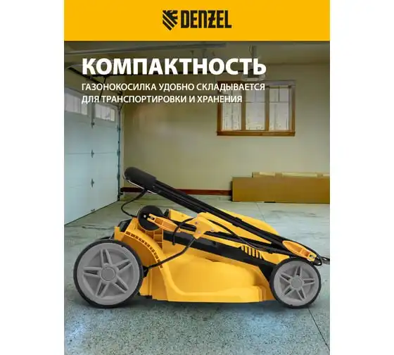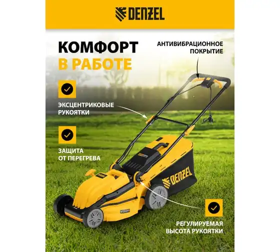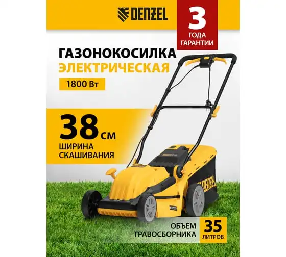 Газонокосилка электрическая Denzel GMC-1800, ширина 38 см, 1800 Вт, 6 уровней, травосборник 35 л, 96629