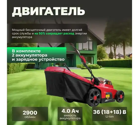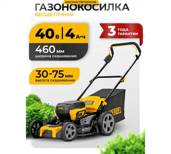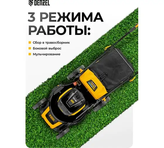 Газонокосилка аккумуляторная бесщеточная DENZEL DLM-460, 460 мм, травосб. 65 л., Li-Ion, 40 В 58911