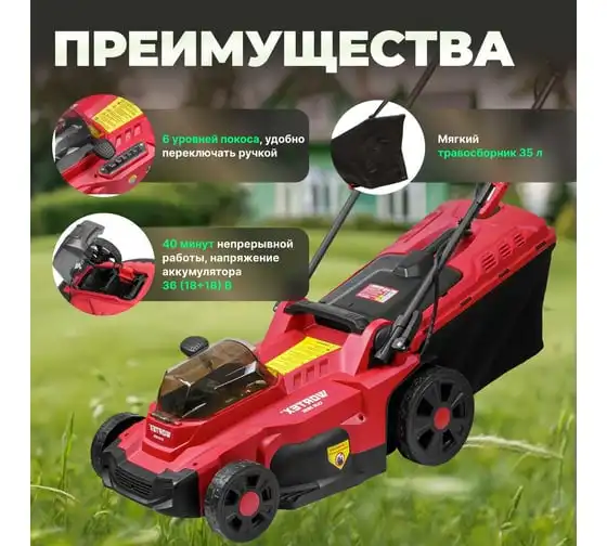 Газонокосилка аккумуляторная бесщеточная MTX CLM-320, 320 мм, травосб. 30 л, Li-Ion, 20 В 58901