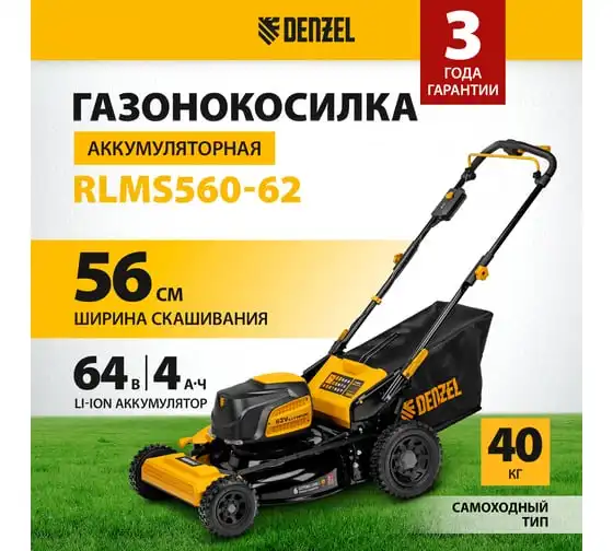 Аккумуляторная самоходная бесщеточная газонокосилка Denzel rlms560-62, 560 мм, li-ion, 62в 58920