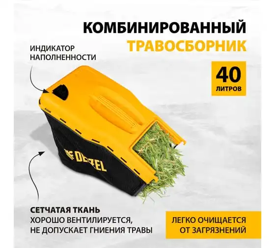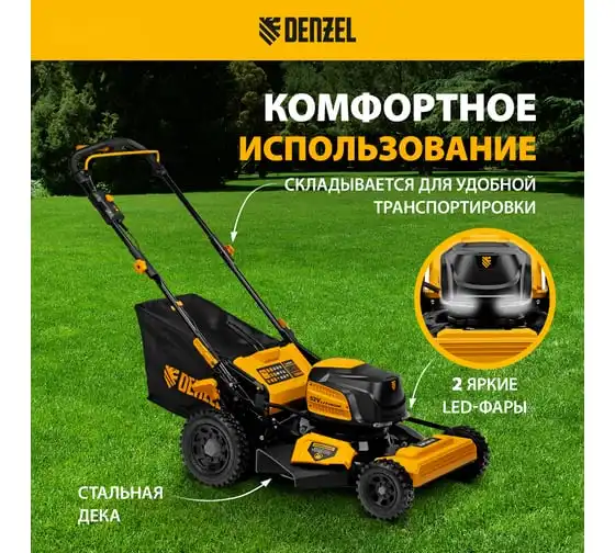 Газонокосилка аккумуляторная бесщеточная DENZEL DLM-460, 460 мм, травосб. 65 л., Li-Ion, 40 В 58911