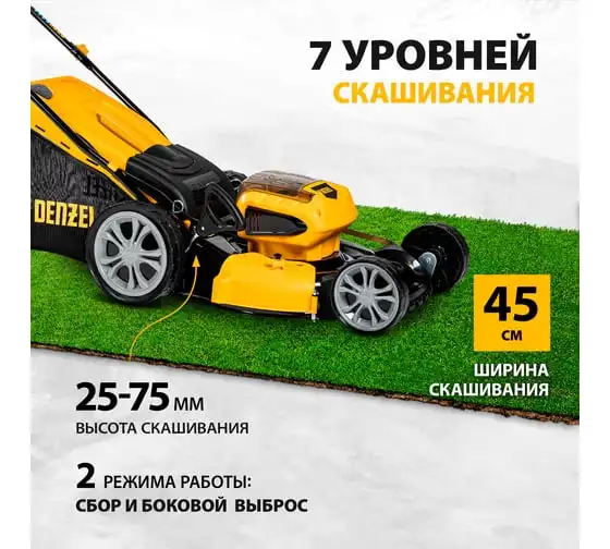 Аккумуляторная бесщеточная газонокосилка Denzel RLM450-36 Li-ion, 36 В, 4 Ач 58910