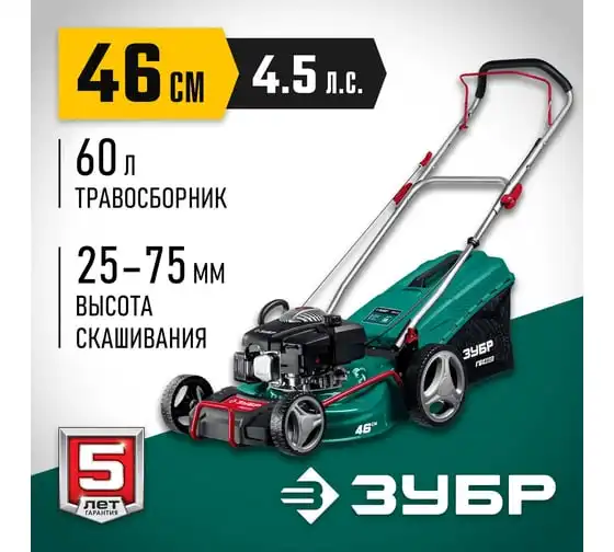 Бензиновая газонокосилка ЗУБР 460 мм, 4.5 л.с. ГБ-460