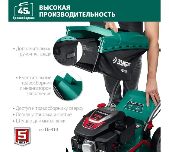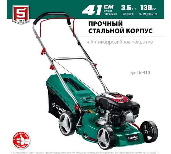 Бензиновая газонокосилка ЗУБР 410 мм, 3.5 л.с. ГБ-410