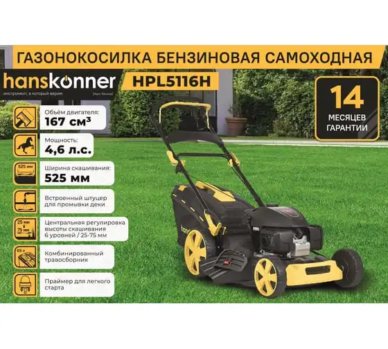 Бензиновая газонокосилка Hanskonner HPL5116H