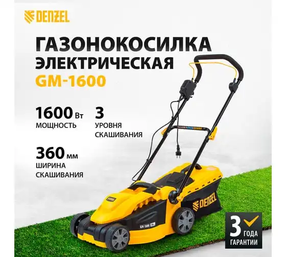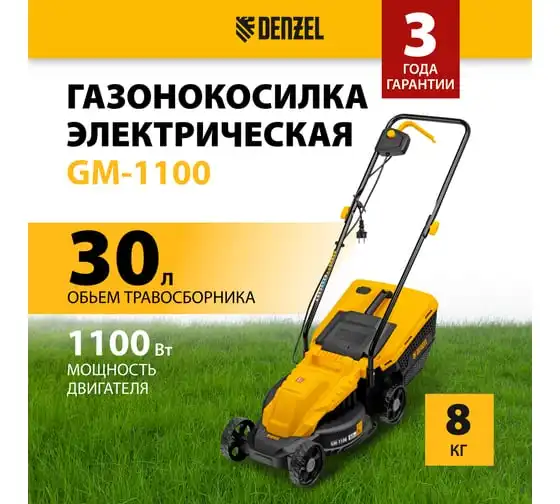 Электрическая газонокосилка Denzel gm-1300, 1300 вт, 35 л 96627