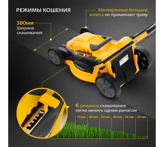 Газонокосилка электрическая Denzel GMC-1800, ширина 38 см, 1800 Вт, 6 уровней, травосборник 35 л, 96629