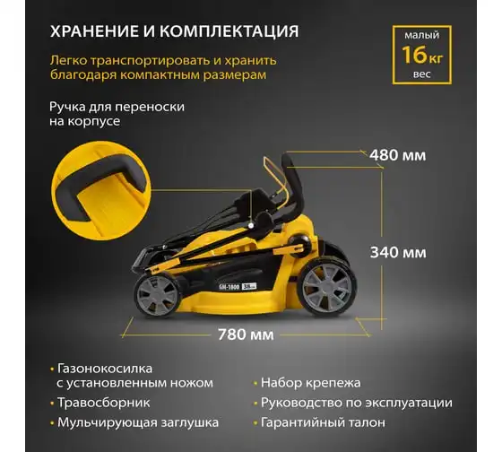 Газонокосилка электрическая Denzel GMC-2000, шир. 44 см, 2000 Вт, 6 уров., травосб., 45 л 96630