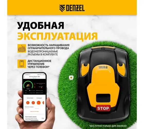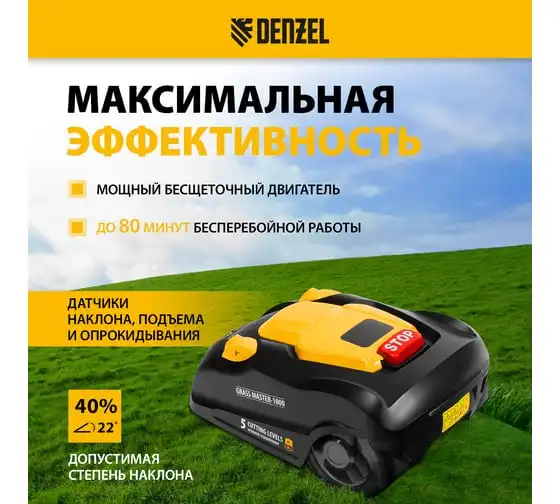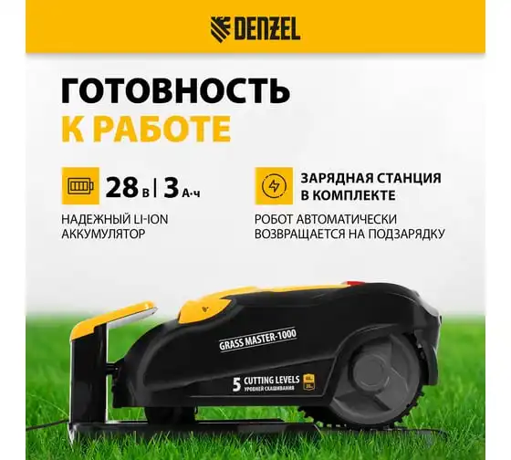 Робот-газонокосилка Denzel Grass Master 1000, ультразвуковой датчик, 3 Ач, LCD дисплей, Wi-Fi 58955