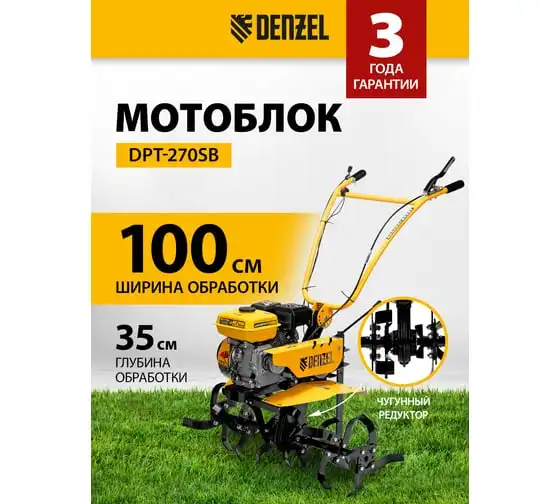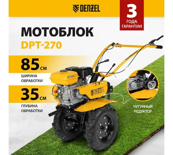Мотоблок Denzel dpt-270x, 7 л.с., дисковое сцепление, фреза 3x4, 8" 56433
