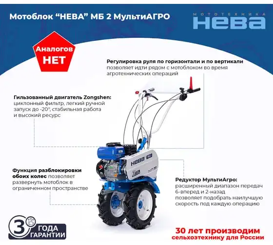 Мотоблок НЕВА Мототехника МБ2 МультиАГРО-ZS (GB225) 4650002230347