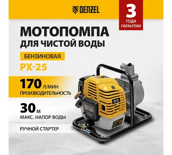 Бензиновая мотопомпа для чистой воды Denzel px-25 99205