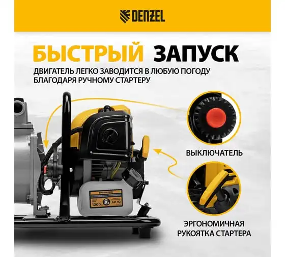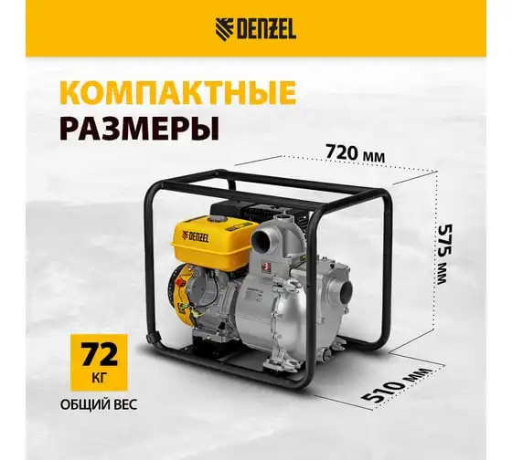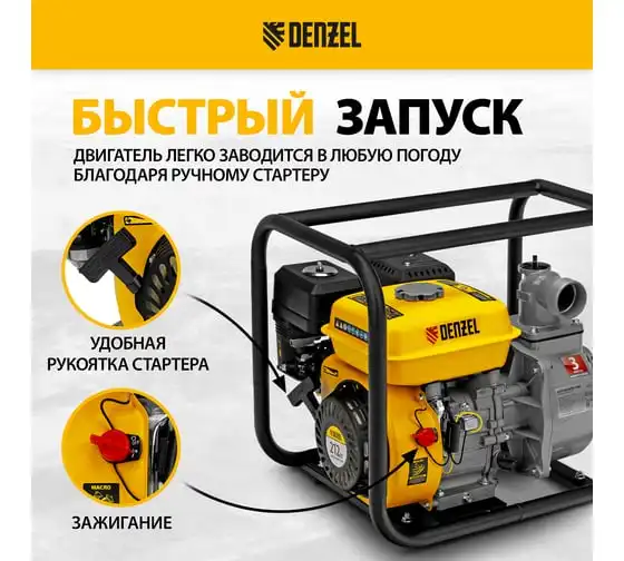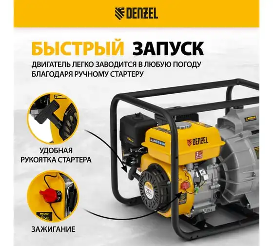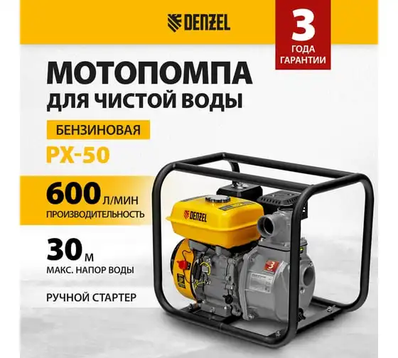 Бензиновая мотопомпа для чистой воды DENZEL PX-50, 7 л.с., 2, 600 л/мин, глуб 8 м,напор 30 м/ 99201
