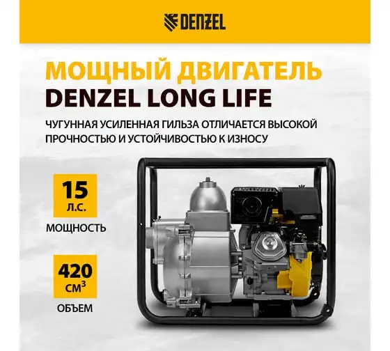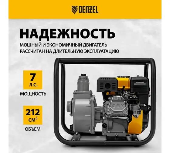 Бензиновая высоконапорная мотопомпа DENZEL PX-50H 7 л.с., 2, 600 л/мин, глуб 8 м,напор 65 м/ 99203