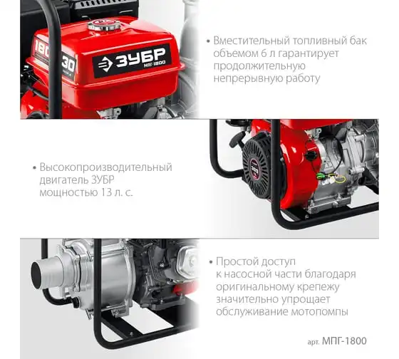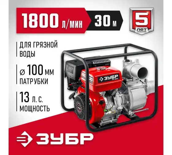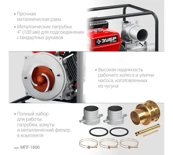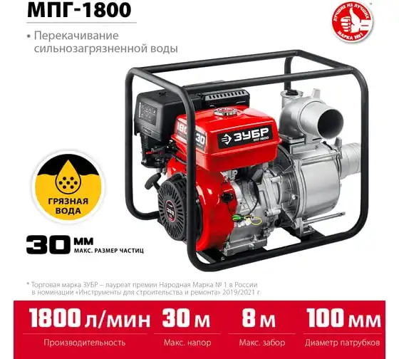 Бензиновая мотопомпа для грязной воды ЗУБР МПГ-1800