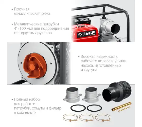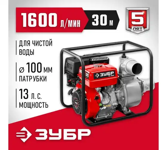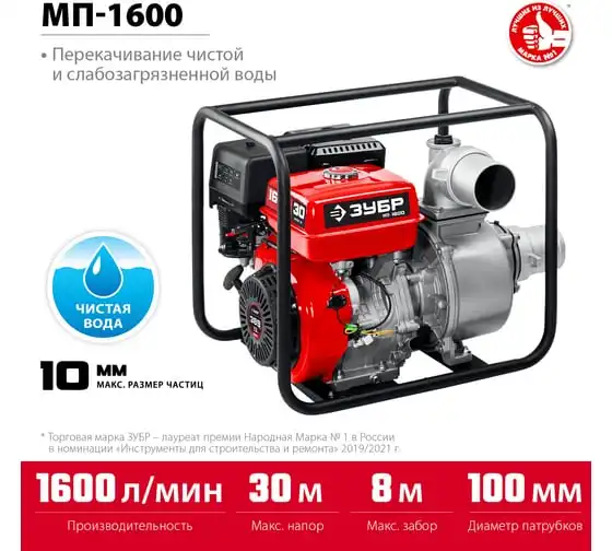 Бензиновая мотопомпа ЗУБР 1600 л/мин МП-1600