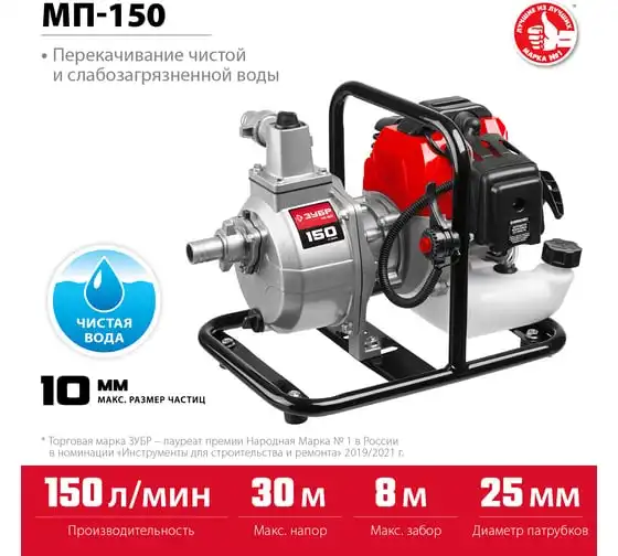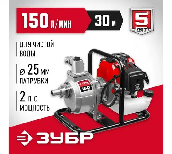 Бензиновая мотопомпа ЗУБР 150 л/мин МП-150