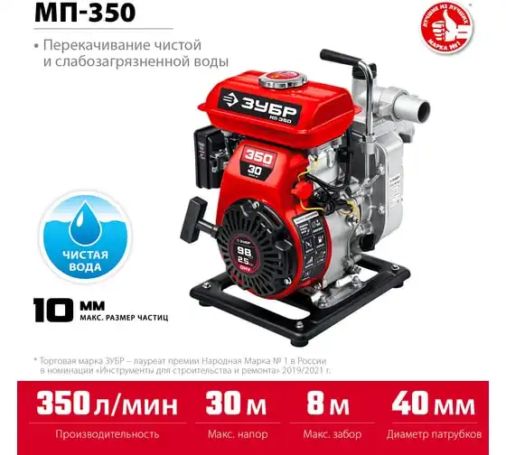 Бензиновая мотопомпа ЗУБР 350 л/мин МП-350