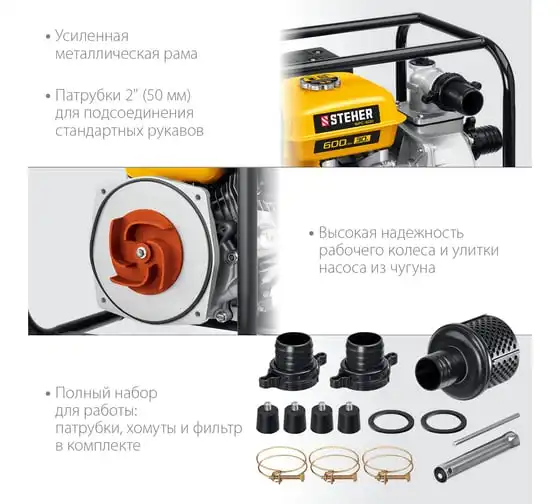 Бензиновая мотопомпа STEHER 600 л/мин WPC-600