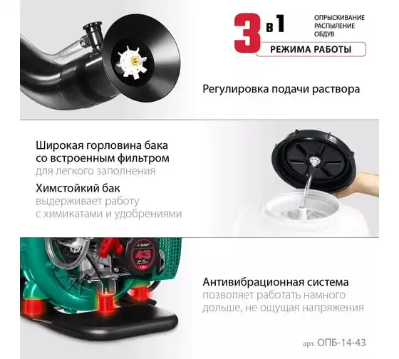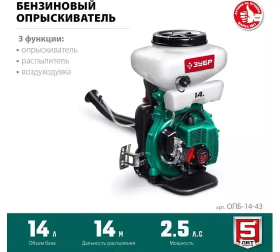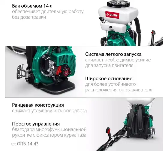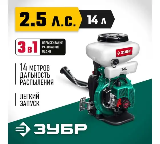Бензиновый опрыскиватель ЗУБР 14 л, 2.5 л.с. ОПБ-14-43