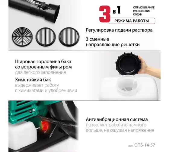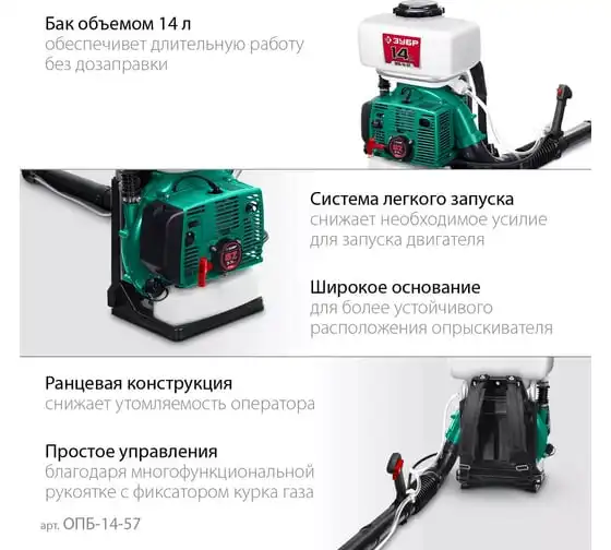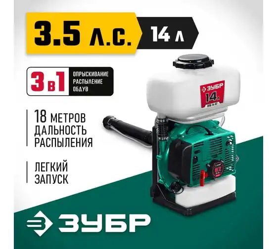 Бензиновый опрыскиватель ЗУБР 14 л, 3.5 л.с. ОПБ-14-57