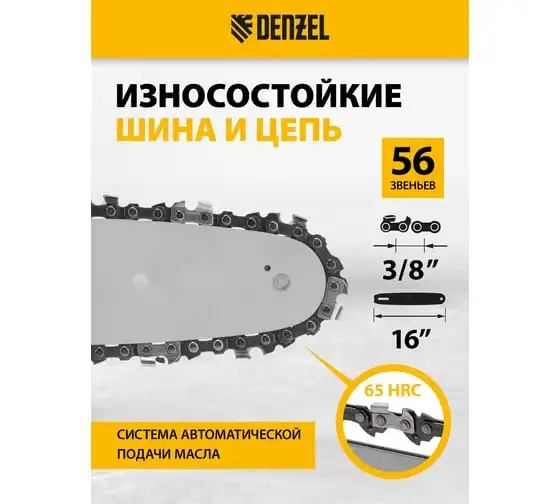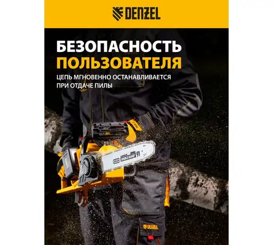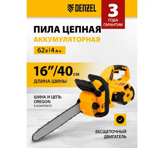 Аккумуляторная бесщеточная цепная пила Denzel, rcs 400-62, 400 мм, li-ion, 62в 58620