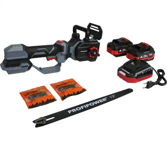 Аккумуляторная цепная бесщеточная пила Profipower MKDUC-18V (Li-ion-1 шт, 4.0 Ач, шина 12", 0-4500об/мин, цепь, З/У, в коробке) E0114