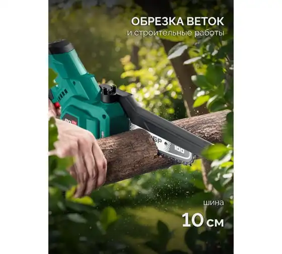 Мини-пила цепная аккумуляторная ЗУБР 20 В, 100 мм шина, без АКБ (LMS), ПЦА-2010