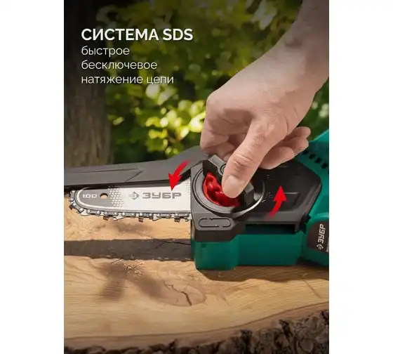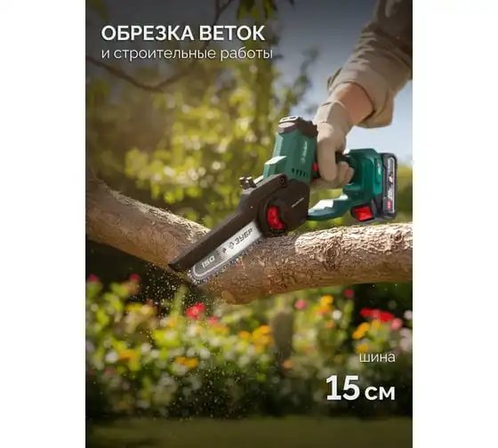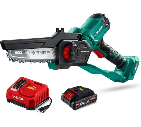 Мини-пила цепная аккумуляторная ЗУБР 20 В, 150 мм шина, 1 АКБ LMS (2 Ач), ПЦБ-2015-21