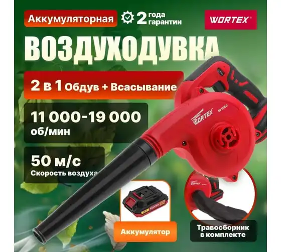 Аккумуляторная воздуходувка WORTEX 18 В BB1518D00029
