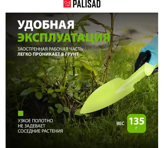 Узкий посадочный совок PALISAD обрез. рукоятка,может использ. с удлин. ручкой 63016,63017// 63002