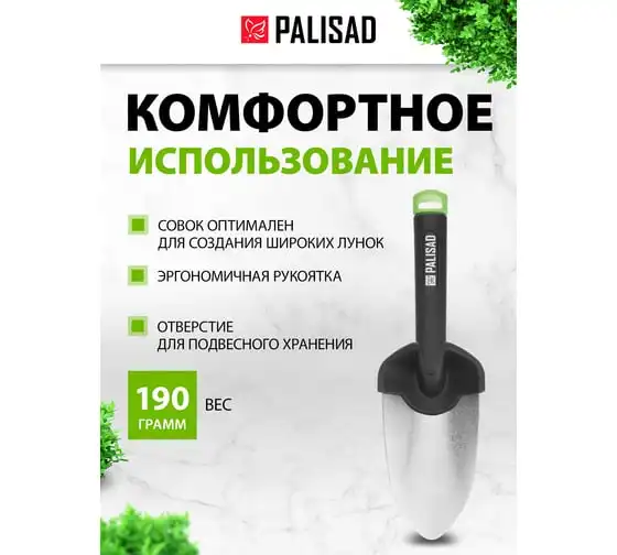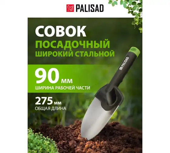 Широкий посадочный совок PALISAD обрез. рукоятка,может использ. с удлин. ручкой 63016,63017// 63001