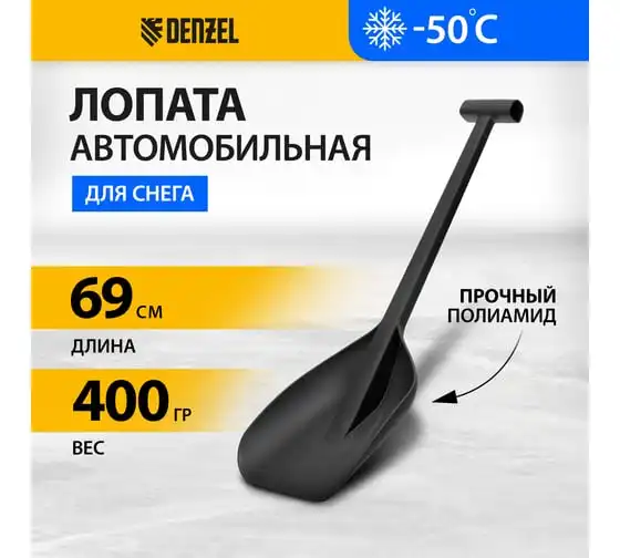 Автомобильная лопата Denzel 230x290x690мм, сверхпрочный полиамид 61670