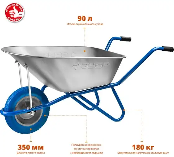 Садово-строительная тачка ЗУБР ПТ-100 90 л, грузоподъемность 180 кг 39901_z01