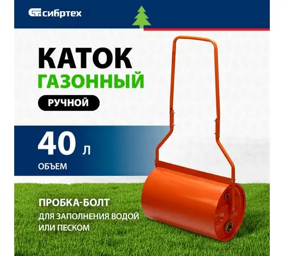 Ручной газонный каток СИБРТЕХ 40 л, наливной, пробка-болт 98204