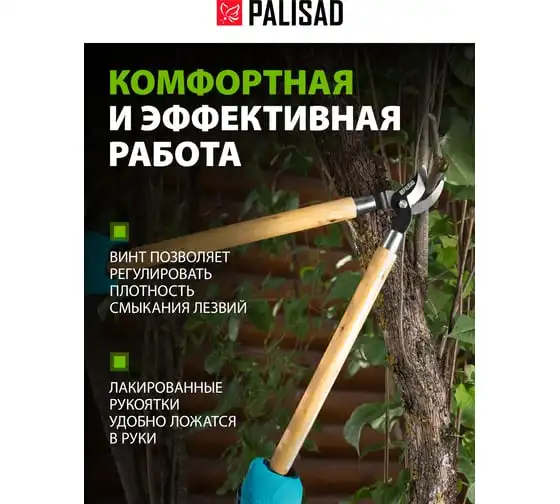 Сучкорез с загнутыми лезвиями 640мм PALISAD из углеродистой стали,деревянные ручки// 605665
