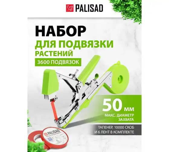 Садовый набор для подвязки растений PALISAD тапенер, скобы 10 000 шт, 6 лент 30 м 64529