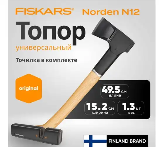 Набор Fiskars: топор универсальный Norden N7 NC COC 021366 FSC Mix + точилка 1051146