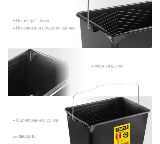 Малярное пластмассовое ведро 12 л, STAYER 06092-12