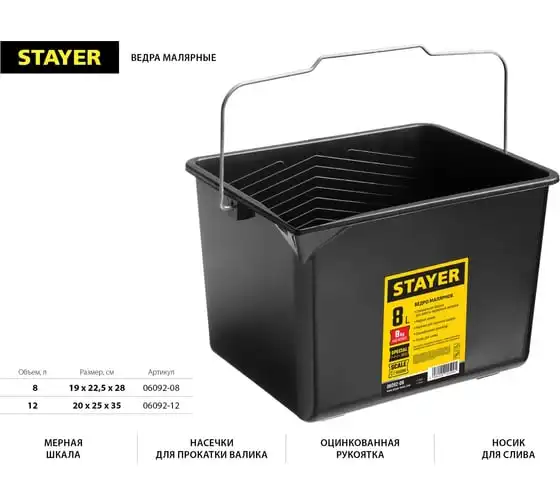 Малярное пластмассовое ведро, 8 л STAYER 06092-08