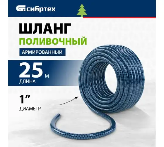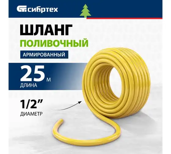 Поливочный армированный шланг СИБРТЕХ ПВХ, 1/2", 25 м 674366