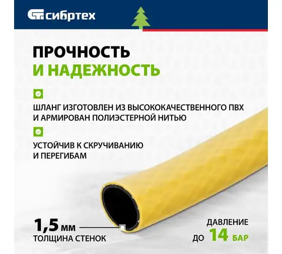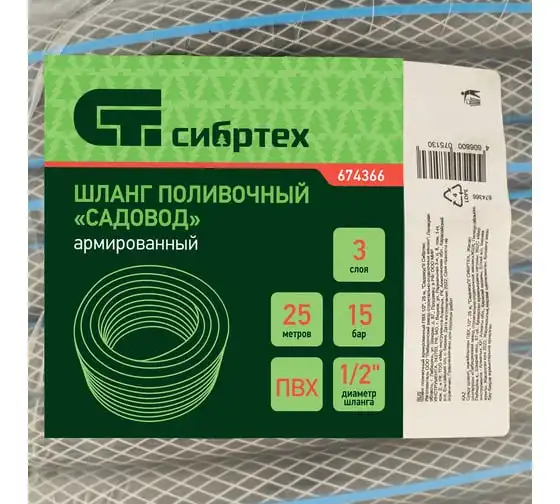 Поливочный армированный шланг СИБРТЕХ ПВХ, 1/2", 15 м, урожайный 675402