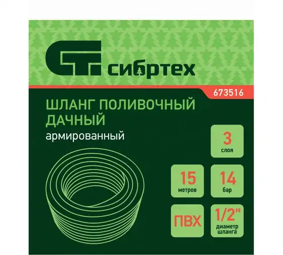 Поливочный армированный шланг СИБРТЕХ Дачник ПВХ, 1/2, 15 м 673516