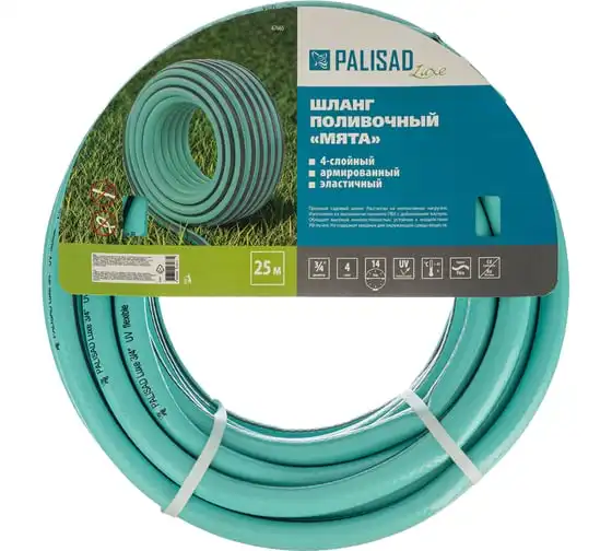 Поливочный 4-слойный шланг PALISAD LUXE 3/4", 25 м, мята 67665
