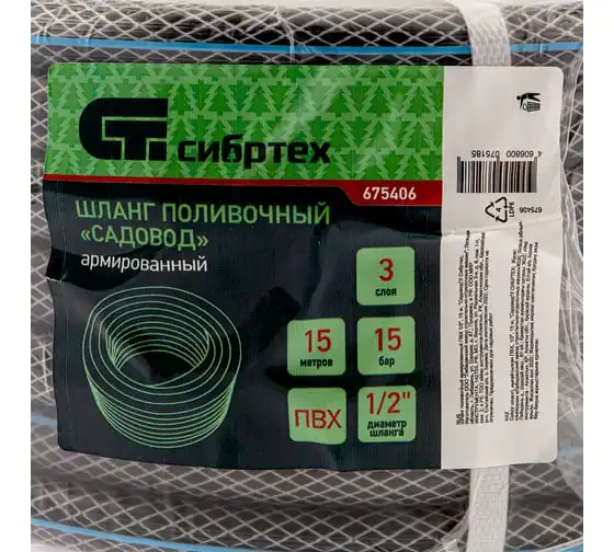 Поливочный армированный шланг СИБРТЕХ ПВХ, 1/2", 15 м 675406