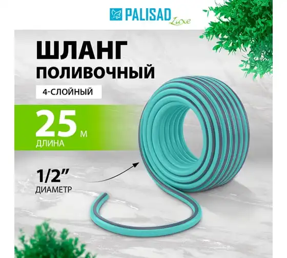 Четырехслойный поливочный шланг PALISAD luxe 1/2", 25 м, мята 67661
