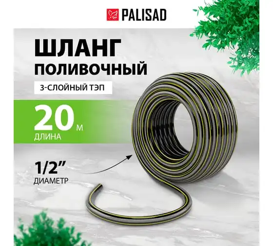 Поливочный армированный 3-слойный шланг PALISAD ТЭП 3/4'', 20 м, аграрный 67112