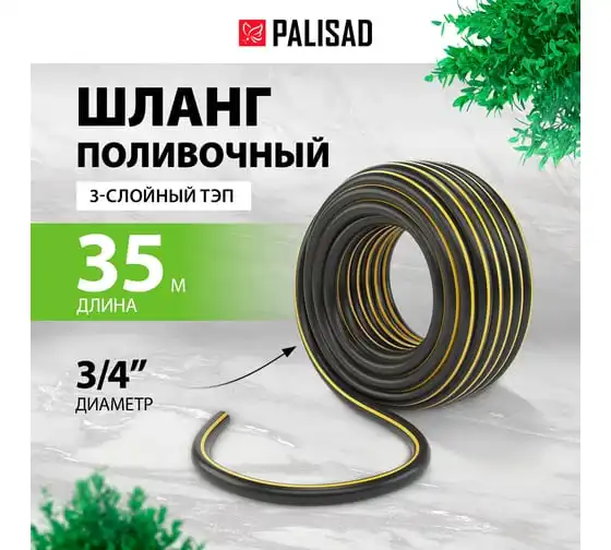 Поливочный армированный 3-слойный шланг PALISAD ТЭП 3/4'', 35 м, аграрный 67113