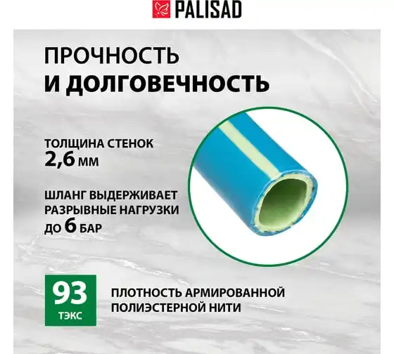 Поливочный армированный 3-слойный шланг PALISAD ТЭП 3/4'', 20 м, лазурный PALISAD 67108