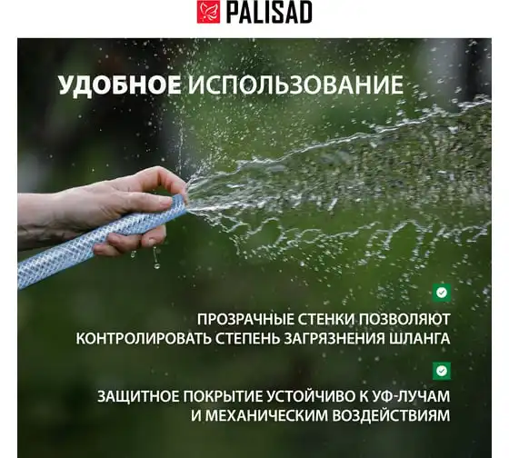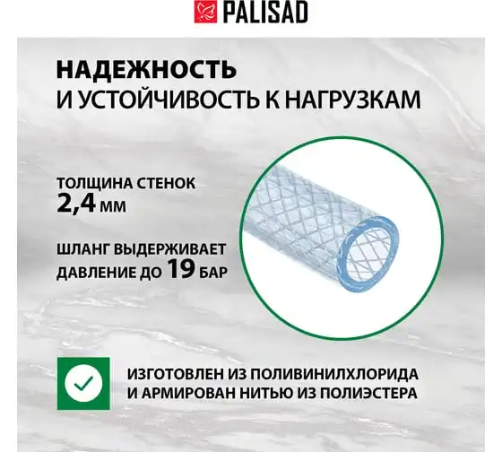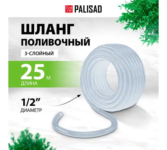 Поливочный шланг PALISAD прозрачный, армированный, 3-х слойный, 1/2", 25 м 67361
